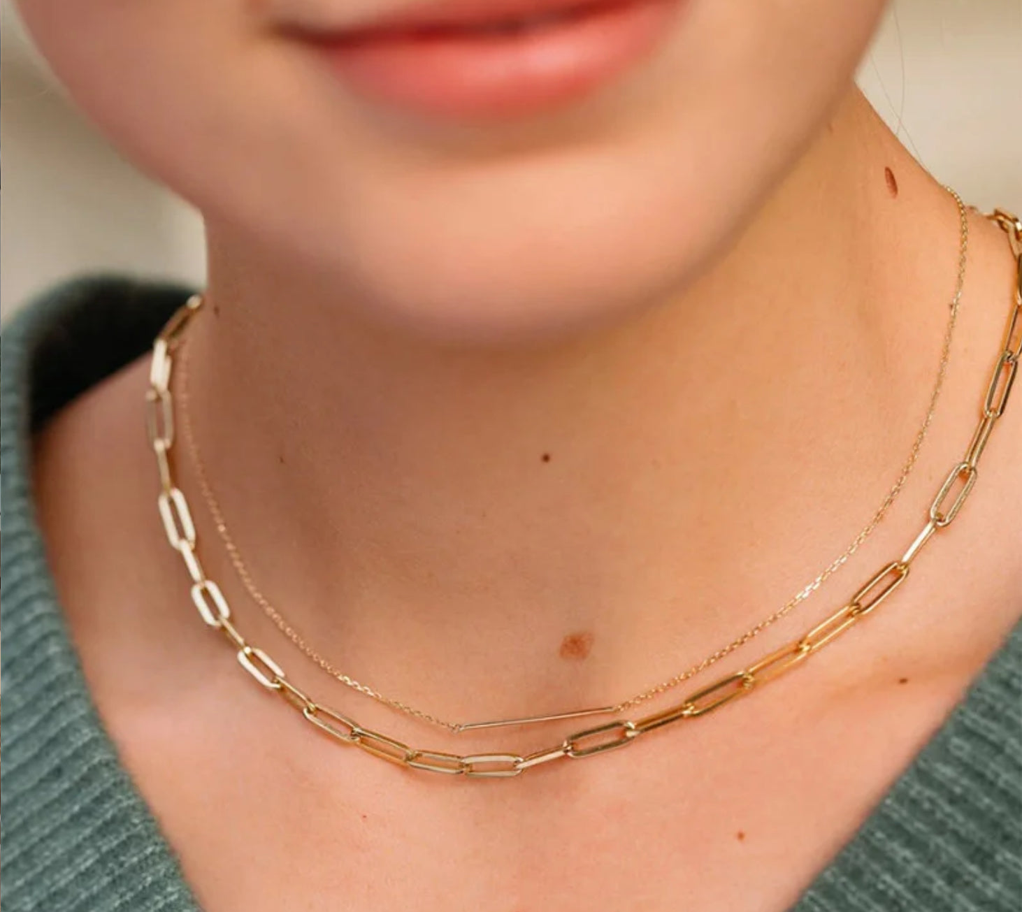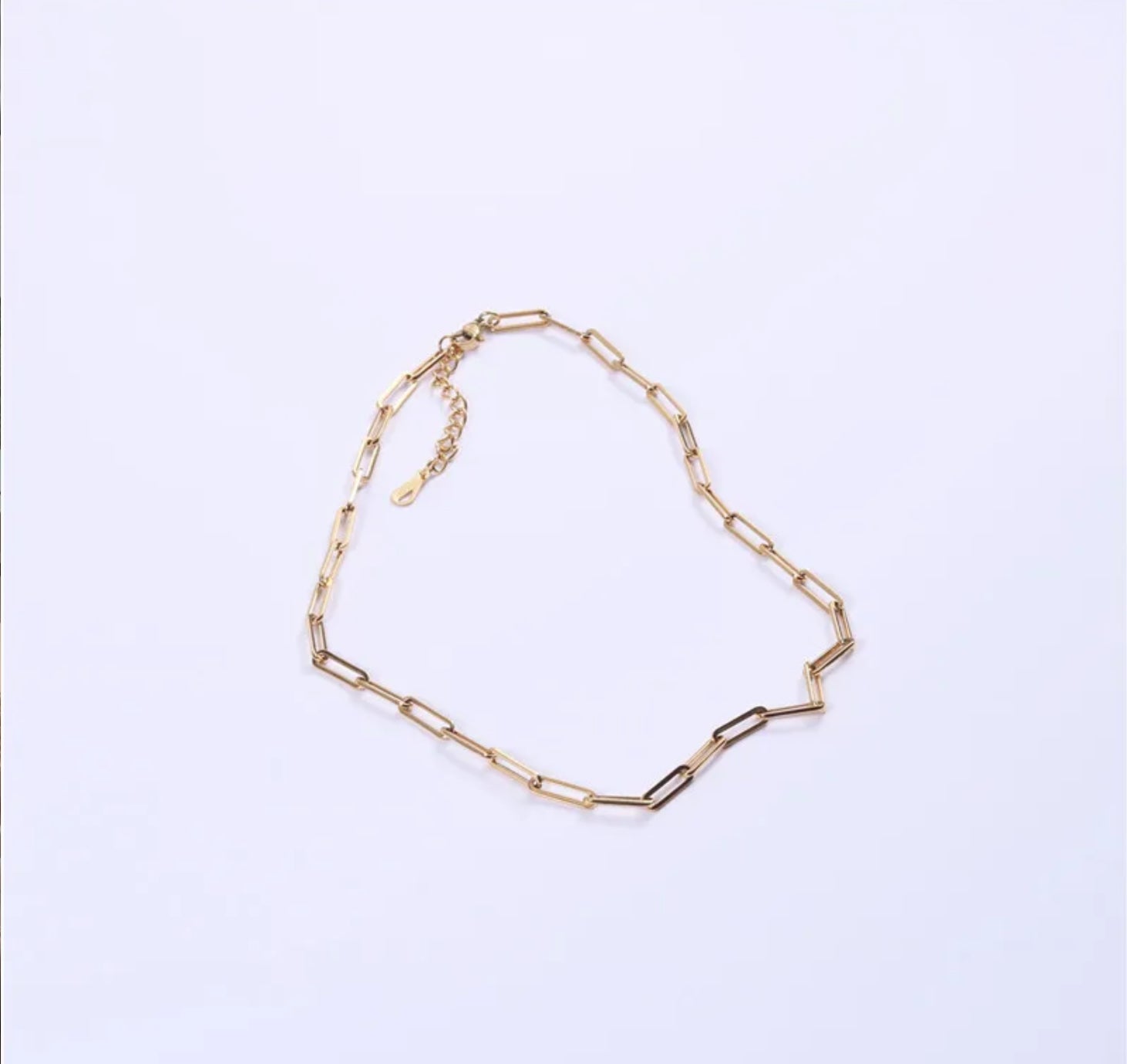 Elevate your style with our exquisite 18 karat gold-plated paper clip necklace. Crafted to perfection, this stunning accessory blends elegance and modernity effortlessly. Whether for a casual outing or a formal event, this necklace adds a touch of sophistication to any ensemble. Don't miss the chance to elevate your jewelry collection with this timeless piece.