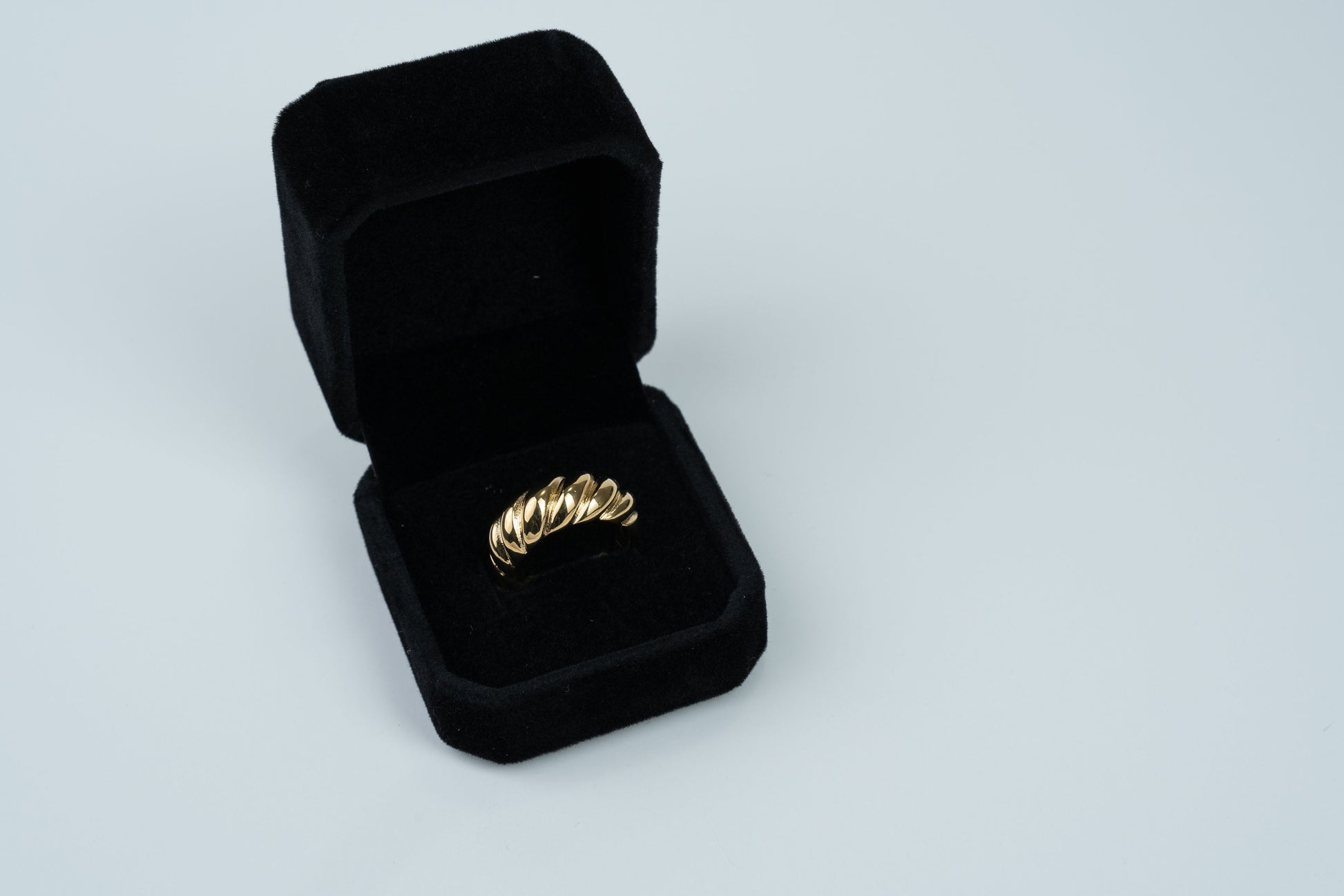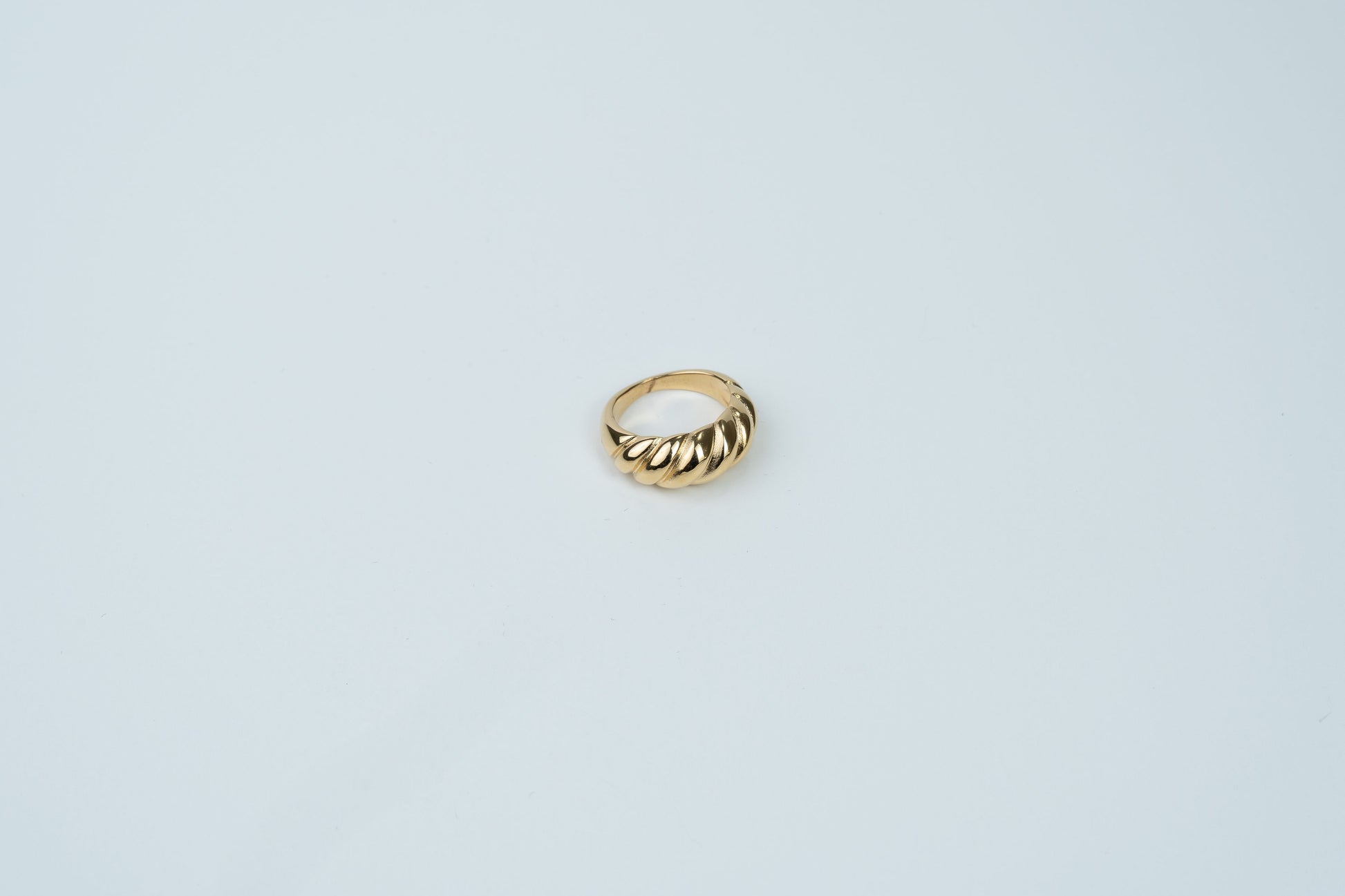 The Gold Croissant Ring is a delightful blend of elegance and playful design. Crafted from high-quality stainless steel and beautifully plated in gold, this ring features a textured, croissant-inspired design that adds a unique flair to your jewelry collection. Its comfortable fit makes it perfect for everyday wear, while the distinctive style ensures it stands out on special occasions. Embrace chic sophistication with the Gold Croissant Ring, a versatile accessory that effortlessly complements any outfit.